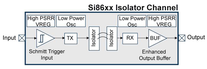 支持外部系統(tǒng)信號(Si8605、Si8606)的單向隔離通道